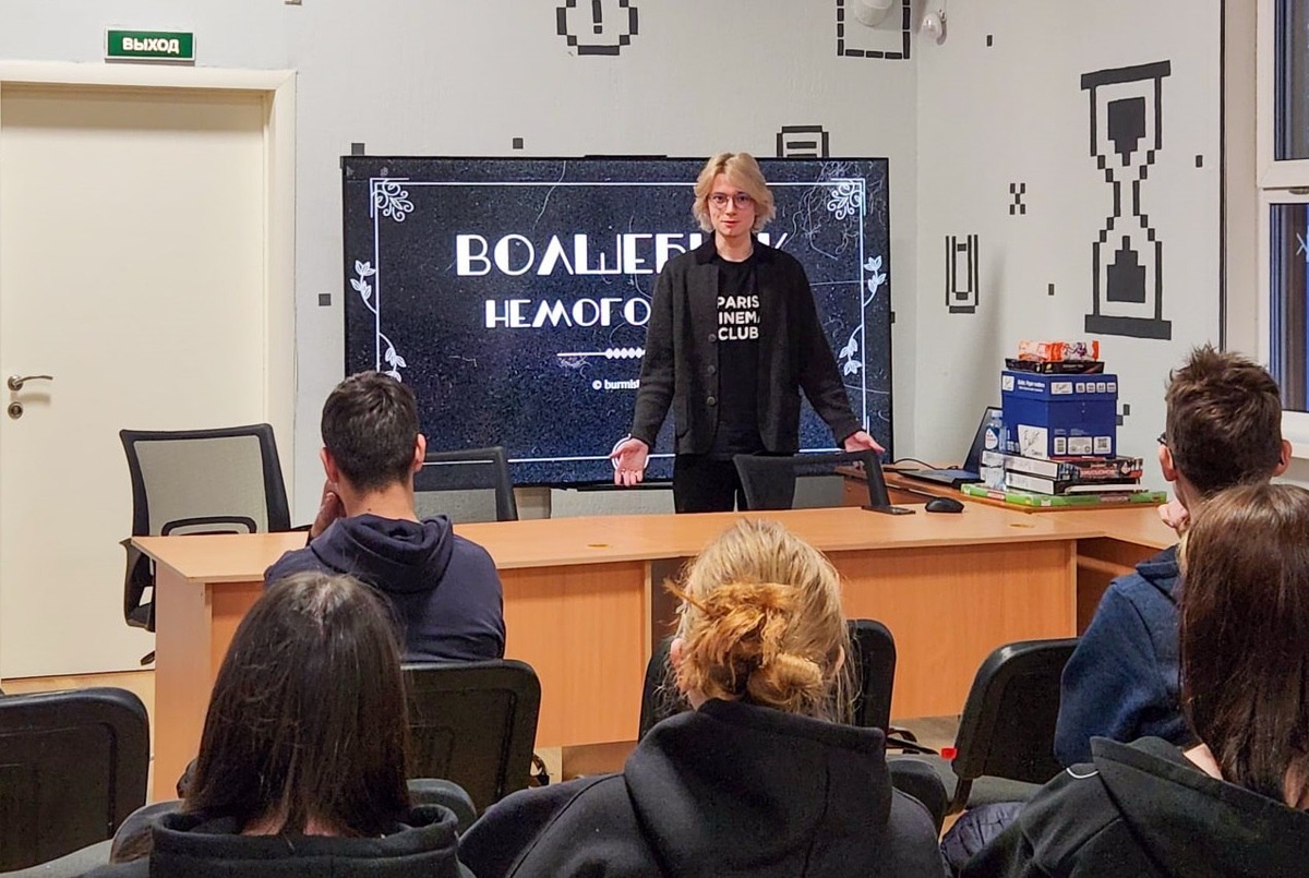 ». После образовательной лекции и мастер-классов студента третьего курса Евгения Бурмистрова и психолога Марии Калининой сотрудничество решено продолжить. Сейчас в оздоровительном комплексе «Дружных» проходит киносмена. Дети помимо посещения образовательных и оздоровительных мероприятий изучают историю кино и знакомятся с его производством. Евгений и Мария на своих уроках рассказали о зарождении кинематографа, о том, каким он был на заре своей истории, когда еще оставался немым. В частности, внимание было уделено творчеству выдающегося французского режиссёра Жоржа Мельеса и демонстрации его фильмов: «Замок Дьявола» (1896), «Человек с резиновой головой» (1901) и «Путешествие на Луну» (1902). Для полного погружения в эпоху черно-белого кино дети попробовали себя в роли актеров на тренингах по развитию языка тела и искусству пантомимы.
