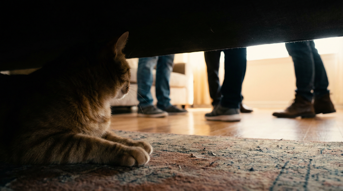 Звонок в дверь. Чужие голоса. Незнакомые запахи заполняют коридор. Тяжёлые шаги, громкий смех, руки тянутся ко мне. Вы зовёте: "Иди познакомься, не бойся". Я убегаю под кровать. Сижу там, пока гости не уйдут. Вы говорите друзьям: "Он такой пугливый, стеснительный". Нет. Я не пугливый. Я осторожный. Это разные вещи. Сегодня расскажу, что происходит в моей голове, когда в мой дом вторгаются чужие, и почему я не выхожу их приветствовать, как вам хочется.