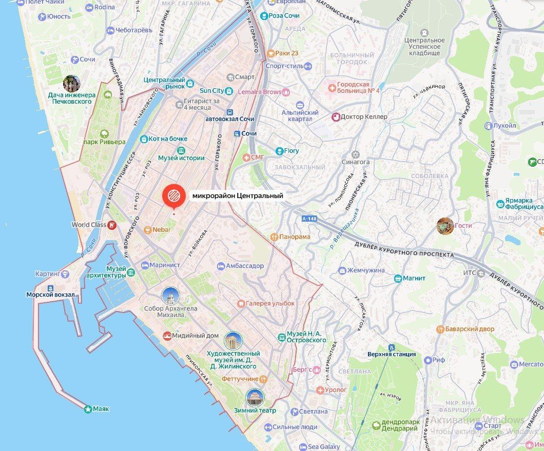 За впечатлениями — прогулка на яхте. Любуйтесь потрясающими видами на закат из ресторанов на берегу моря. Нужны минуты спокойствия? Приморский парк, скверы с фонтанами и садами ждут вас. А если вам хочется немного культуры? Органный зал, Зимний театр, Художественный музей, концерты в Фестивальном привнесут искусство в ваш мир. Все, что вам нравится в Сочи, прямо за вашей дверью. Так звучала бы реклама квартиры в ЖК в центре. Вдоль Курортного проспекта, от Зимнего театра до реки Сочи. Настоящий центр Сочи можно условно очертить рекой Сочи от дублера Курортного проспекта, линией моря до Зимнего театра вверх, по улице Комсомольской. Каждый второй покупатель на вопрос "В каком районе хотите квартиру?" - выбирает центр. Центр - это витрина, лицо города. Здесь морской порт и пляжи «Маяк» и «Приморский», здесь самые красивые парки и скверы. Лучшие рестораны и кофейни. Хорошие школы 1, 2 и 8. И конечно, здесь самые дорогие дома: ✔ ЖК Красная площадь 2014 Минимальная площадь 72м2, панорам