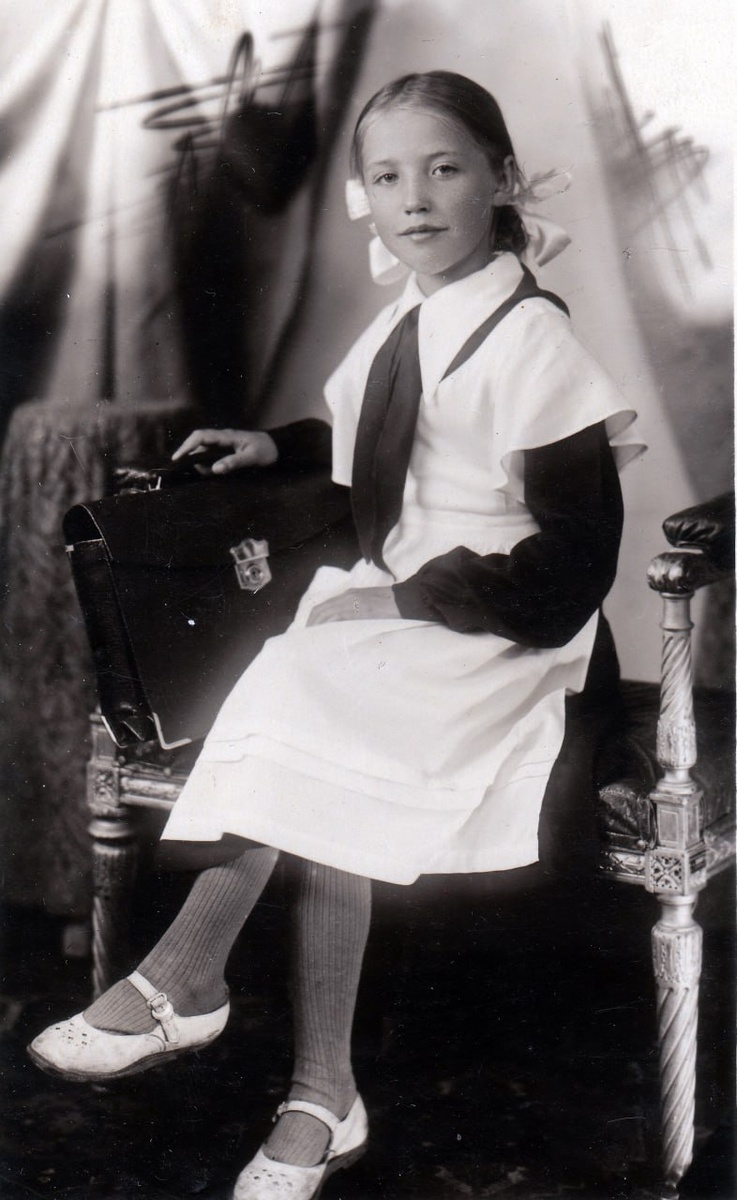 Девочка-пионер в школьной форме с пионерским галстуком символом Всесоюзной пионерской организации имени В