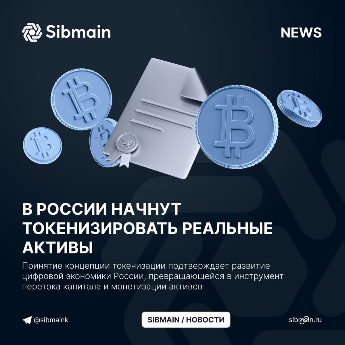 📰📰📰📰 ➡️В России начнут токенизировать реальные активы Правительство России утвердило концепцию токенизации активов реального сектора экономики, выводящую финансовый рынок на новый уровень. Планируется токенизация: ⏺Имущества без обязательной госрегистрации; ⏺Результатов интеллектуальной деятельности; ⏺Документарных ценных бумаг; ⏺Долей в уставных капиталах 📍Принятие концепции токенизации подтверждает развитие цифровой экономики России, превращающейся в инструмент перетока капитала и монетизации активов