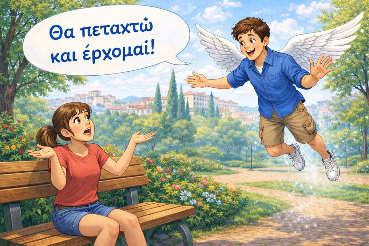 ! 🌙🇬🇷✨ Ловите отличную разговорную фразочку 👇😉 💬 θα πεταχτώ και… Глагол πετάγομαι происходит от πετάω («бросать», «летать») ✈️ Но в живой речи πετάγομαι означает: 👉 быстро сбегать и вернуться 🏃♂️ 👉 заскочить на минутку ⏳ 👉 «я слетаю туда-сюда» То есть буквально — «метнуться» 😄 📌 Разница простая: • πετάω — бросаю / летаю 🕊 • πετάγομαι — резко появляюсь / быстро сбегаю Форма θα πεταχτώ — будущее время: «я быстро слетаю и вернусь» 😉 📌 Примеры из жизни: • Θα πεταχτώ στο περίπτερο και έρχομαι. Я слетаю в ларёк и вернусь 🍫 • Θα πεταχτώ μέχρι το σούπερ μάρκετ. Я быстро заскочу в супермаркет 🛒 • Πετάγομαι στην τράπεζα και γυρίζω. Сбегаю в банк и обратно 🏦 Звучит быстро, правда? 😄 Но… мы же в Греции 🇬🇷😉 Как известно, греки не всегда славятся пунктуальностью 😅 Одна ученица рассказала забавную историю 🤭 Менеджер в банке прямо в середине оформления дебетовой карты (χρεωστική κάρτα) 💳 вдруг сказал ей: — Θα πεταχτώ και έρχομαι. Она ждёт… 5 минут… 10 минут