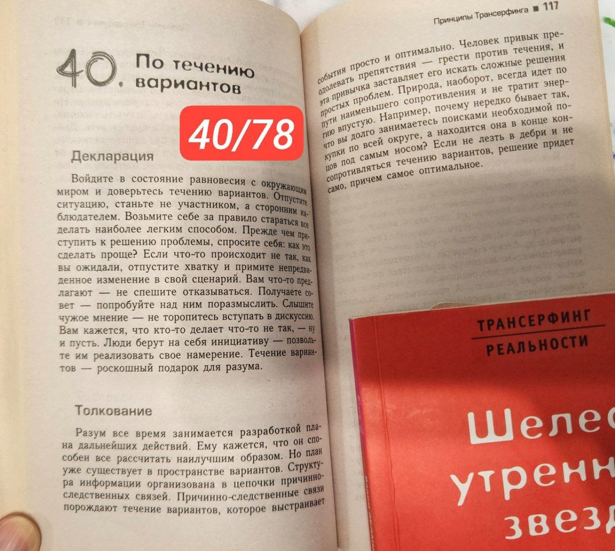 40/78 Практикум управления реальностью - Трансерфинг По течению вариантов "Возьмите себе за правило стараться все делать наиболее легким способом. Прежде чем приступить к решению проблемы, спросите себя: как это сделать проще?" "План уже существует в пространстве вариантов. Структура информации организована в цепочки причинно-следственных связей. Причинно-следственные связи порождают течение вариантов, которое выстраивает события просто и оптимально. Природа всегда идет по пути наименьшего сопротивления и не тратит энергию впустую. Если не лезть в дебри и сопротивляться течению вариантов, решение придет само, причем самое оптимальное." ❣Как мы любим все усложнять, а потом с гордостью преодолевать сложности... а ведь всё гениальное - просто, и это не с проста! 😉 #БлагоТворю@happy_family_way #Создаю_свой_уютный_и_кайфовый_слой_реальности@happy_family_way