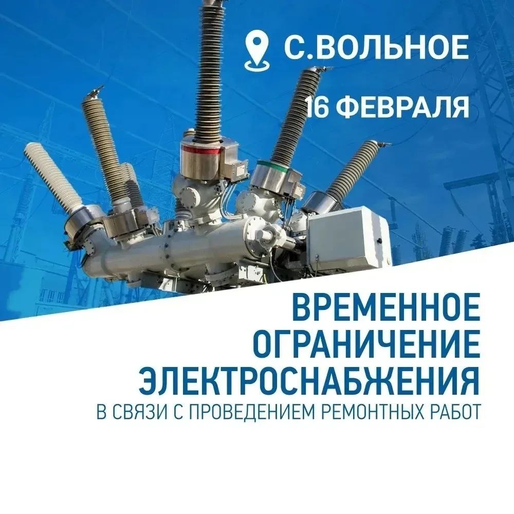 подачи электроэнергии 🗓️ 16 февраля 2026 г. с 10:00 до 17:00 📍c. Вольное: ул.Восточная 1-31, 2-8, Гагарина 2-46, 3-51, Горького 1-63, 2-52, Комсомольская 4-26, 5-25, Краснодарская 1-65, 2-34, Кубанская 1-11, 2-20, Ленина 2-84, 3-85, ул.Мира 1-59, 2-30, Набережная 1-27, 2-8, Октябрьская 4-104, 5-67, Первомайская 1-61В, 4-76, Пионерская 1-7, 33-39, 2-6, 14-40, Подгорная 1-15, 2-26, Почтовая 1-9, 4-38, Советская 1-45а, 2-66, Циолковского 3-39, 20-40, Школьная 2-50, 3-39, Южная 13, 64-112, 65-77. 📲Дополнительную информацию можно получить по телефону: т.886140 5-54-60, 89183800570 https://max.ru/id2372001505_gos https://ok.ru/group/70000041523919 https://vk.com/public212083585 https://dzen.ru/id/660af8bc3bd95d5b99e56429 - подпишись на СВОй "Рассвет".