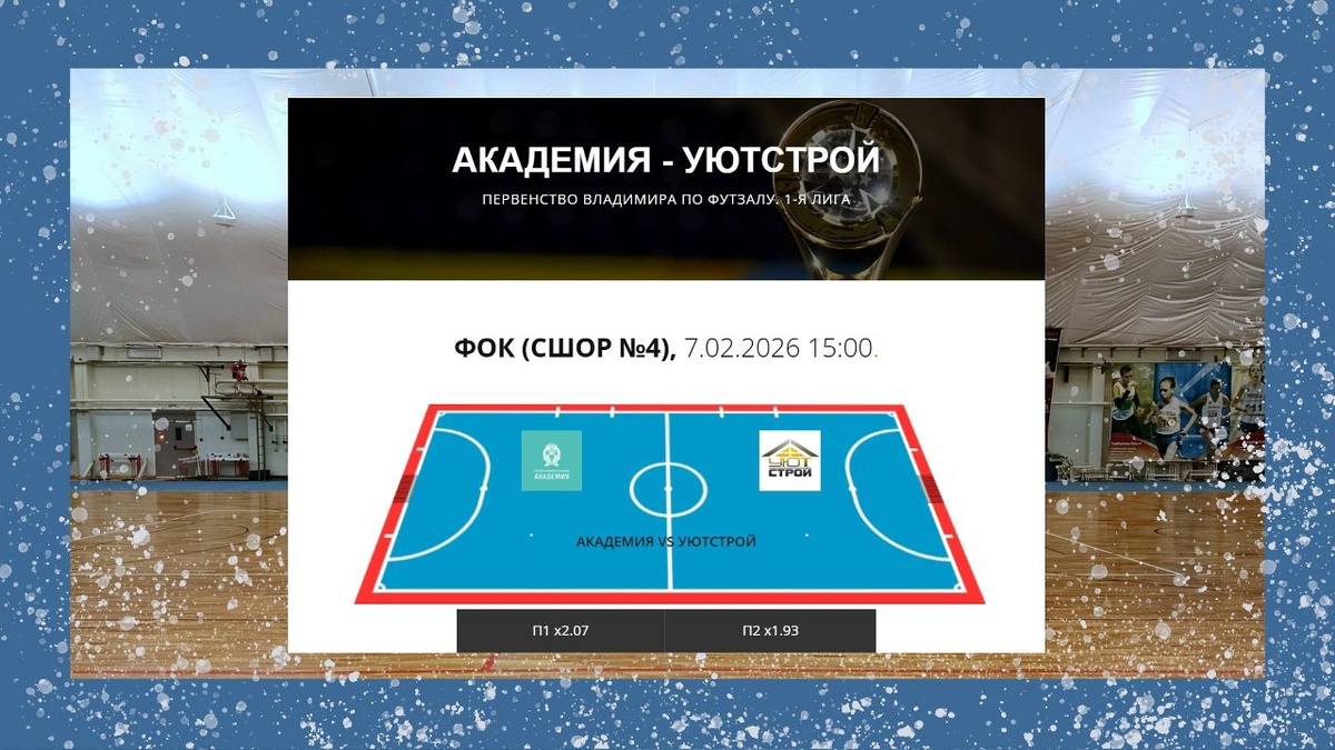 Первенство Владимира по футзалу. 1-я лига. 07.02.2026 г. Академия - УютСтрой 1:4 (0:1) Обзор