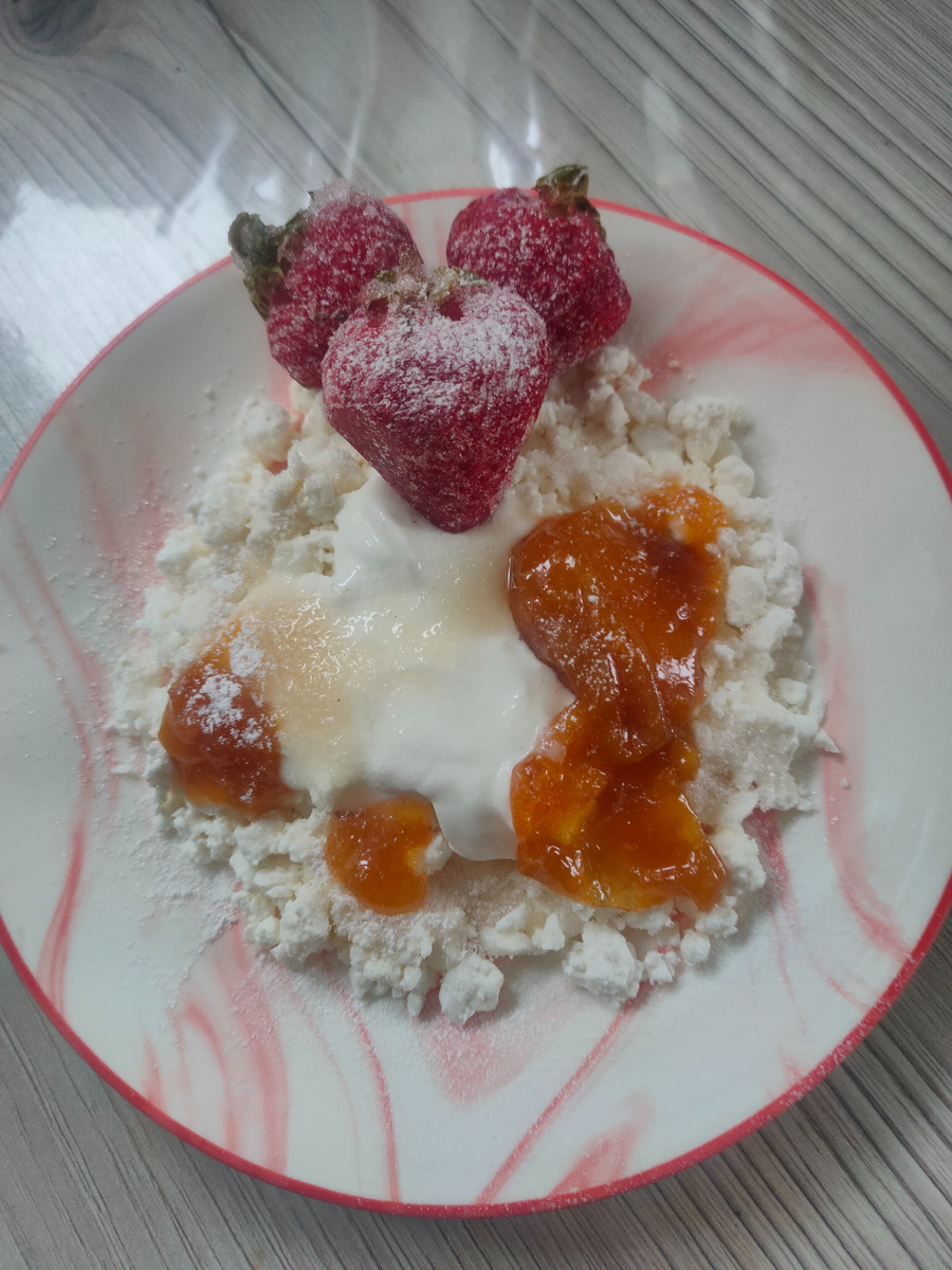 Пусть сегодня с самого утра все будет лучше, чем вчера. Доброе, доброе утро! С вами Надежда, и я приглашаю вас на мою кухню, где покажу вам мое меню на день. Сегодня мне на карту должна прийти пенсия + последняя тысяча от Альфа - банка. А на телефон пришла СМС от Сбербанка, с просьбой перевести к ним пенсию, обещают льготы для пенсионеров. Не смотрела, пока не думаю переводить, хотя все платежи за услуги плачу картой Сбербанка. Слышала, что с карты одного банка на другой будет переводить не выгодно даже себе, а снимать и класть у меня нет возможности, так как надо будет ехать в город. Поживем - увидим, как будет. На завтрак сегодня творог со сметаной и абрикосовым джемом. кофе с конфетой Эли и бутербродами с маслом и сыром и куриным паштетом и свежим огурцом ( вчера разговаривала с сыном, у нас огурцы уже стоят больше 300 рублей). На обед буду варить рассольник из домашней зимней заготовки. Достала из подполья консервацию: вишневый компот, маринованные помидоры, резанные огрчики, бор
