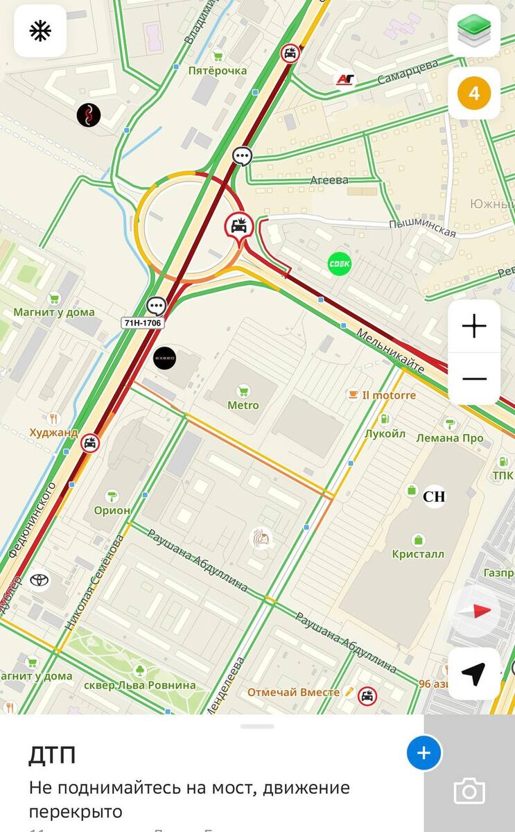 «По фуре в каждой полосе»: из-за серьезного ДТП парализовано движение на мосту по ул Федюнинского, в районе пересечения с Мельникайте