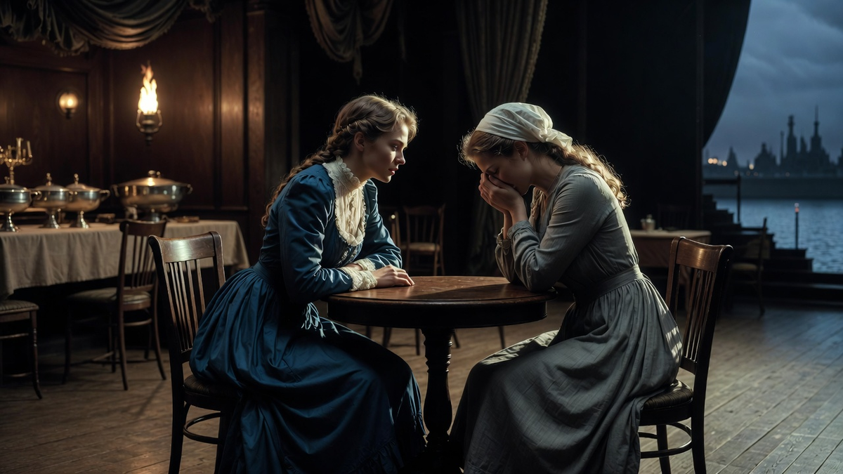 Она ждала почти час. Уже начала думать, что Анна не придёт, когда дверь тихо скрипнула и в проёме появилась тоненькая, хрупкая фигурка в простом сером платье.