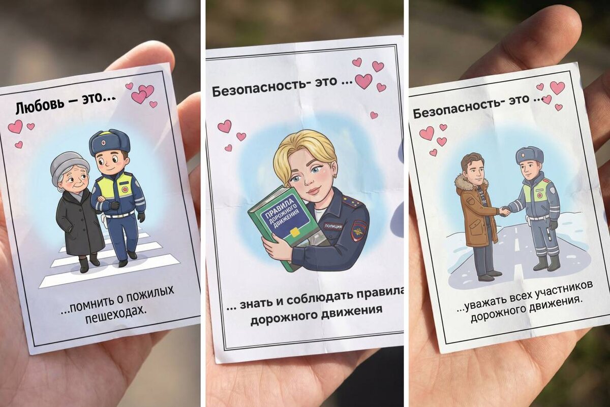 В преддверии Дня всех влюбленных сотрудники Госавтоинспекции провели в Арзамасском округе профилактическую акцию "День влюбленных в ПДД". Вместо стандартных памяток водителям и пешеходам вручали яркие тематические иллюстрации, созданные с помощью искусственного интеллекта. Как сообщили в пресс-службе ГУ МВД России по региону, серию картинок автоинспекторы разработали сами. За основу взяли стиль популярных вкладышей в жевательной резинке Love is из 90‑х — с короткими подписями о любви и дружбе. Только в этот раз речь идет о любви к безопасности и уважении на дороге. На иллюстрациях — трогательные и понятные сцены: инспектор помогает ребенку перейти дорогу, автомобилист пропускает пешехода, полицейский поддерживает пожилую женщину. Каждая картинка сопровождается простым и добрым напоминанием о важности соблюдения правил, а главными героями выступают действующие сотрудники нижегородской Госавтоинспекции. Организаторы отметили, что хотели уйти от сухих формулировок и проявить креатив. А о