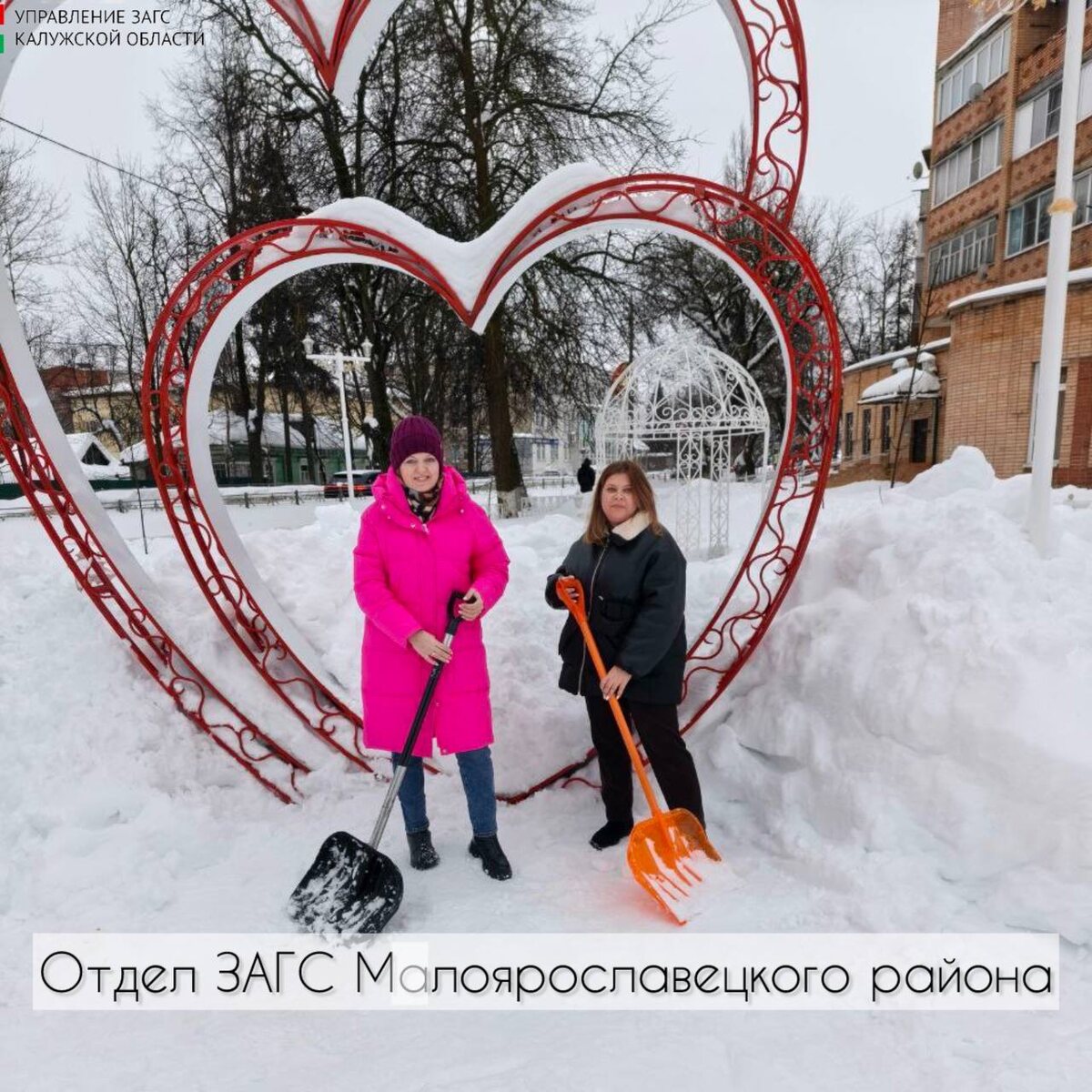 ❤️ Сотрудники отдела ЗАГС регулярно выходят на субботники с целью очистить от снега локации, используемые молодоженами для своих фотосессий. #ЗАГС40 #Отдел_ЗАГС_Малоярославецкого_округа