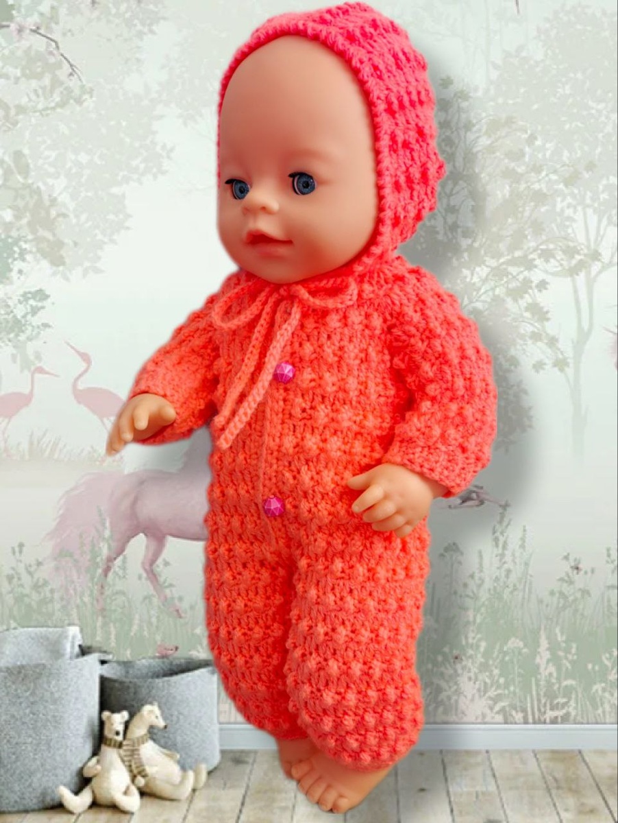 И я как раз успела дописать для вас мастер‑класс по вязанию комбинезона крючком для пупса Бейби Бон и аналогичных кукол ростом 40 см.