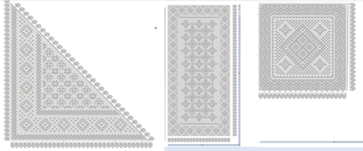 Меня не было здесь почти месяц. Я не писала и не показывала процесс, но это не потому, что ничего не происходило. Наоборот — всё это время я работала над новой вещью. Я долго не решалась начинать вязать косынку. Честно думала, что у меня не получится. Всё-таки это другая форма, другая логика расчётов. Но в какой-то момент я просто собрала в голове весь свой опыт за последние три года работы с оренбургскими платками и похожими изделиями и поняла: знаний уже достаточно. Нужно просто начать. Перед новым годом, когда я у меня вышел новый платок Обережный, я сперва думала, что надо сделать еще палантин, о косынке и речи не было, но уже в процессе отрисовывания схемы родилась и косынка. В голове упорно сидела идея и не давала мне покоя. Эскизы моих дизайнов теперь выглядят так. Как вам? Вроде разные, но есть что-то общее. Платок мы в декабре вязали с девочками в совместнике. Палантин сейчас вяжет несколько человек, они тестируют узор и на ошибки. А косынку вяжу сейчас я. Для косынки я выб