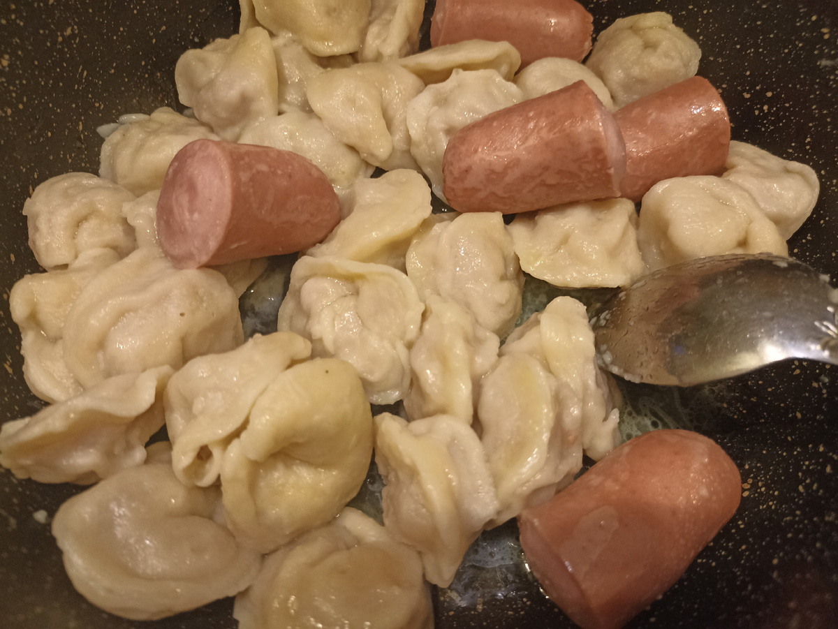 Сегодня на завтрак приготовила пельмешки и сосиски... Девчонки встанут перед школой поедят...