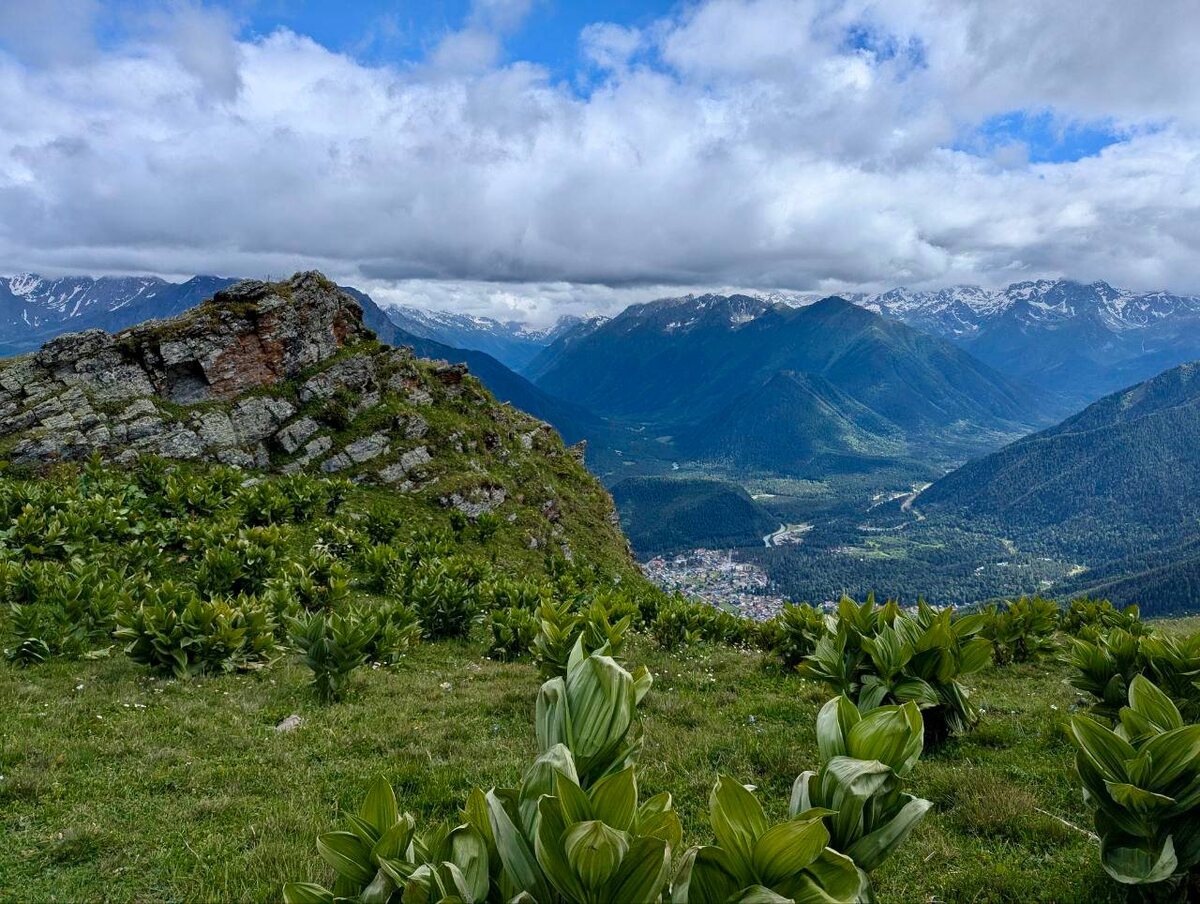 Эта высота не является финальной, дальше тропы ведут на смотровые выше, к вершинам хребта и перевалам. Женская часть команды напрочь отказалась идти вверх с такого теплого мягкого луга с цветами, предпочла валяться в ожидании, и наш мужчина увлеченно пошел один, принеся фото с более высоких смотровых. Здесь вершины хребта уже совсем близко, появляются снежники, склоны становятся скальными, и лишь стада свободно пасущихся лошадей оживляют пейзаж. На таких высотах ходят подготовленные туристы с многодневными походами, там есть прекрасные стоянки под палатки с видами на ледники и горные озера, но это уже совсем другая история. #Архыз
