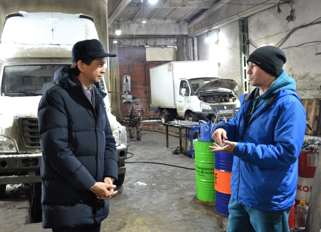 Сегодня Уполномоченный при Раисе Республики Татарстан по защите прав предпринимателей Фарид Абдулганиев совершил рабочую поездку на производственные объекты предпринимателя — участника специальной военной операции Расула Таспенова. Расул Таспенов является руководителем транспортной компании «Интеграл» и грузового автосервиса «Ремтрак». Накануне предприниматель в ходе совместного приема ветеранов СВО в филиале Государственного фонда «Защитники Отечества» по РТ обратился к бизнес-омбудсмену РТ. Он рассказал о планах по расширению своего дела и запросил содействие в поиске подходящего земельного участка. Сегодня Фарид Абдулганиев вместе со своим общественным представителем в Казани Михаилом Кузнецовым лично посетил офис и ремонтный цех компании. В ходе встречи предприниматель детально представил текущую деятельность, обозначил перспективы развития и еще раз акцентировал потребность в подборе земельного участка для аренды и последующего строительства здания авторемонтной мастерской. По ит