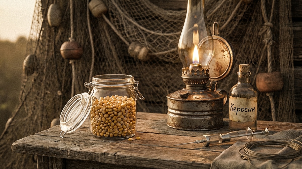 Когда я впервые услышал об этом "секретном ингредиенте", я, честно говоря, подумал, что меня разыгрывают. Керосин? Тот самый, вонючий, технический керосин, которым лампы заправляют и детали от масла моют? Да быть того не может! Рыба — существо нежное, она чувствует запахи в воде в миллион раз лучше человека. Она же за километр убежит от такой химии! Мы тут с вами спорим до хрипоты, какой дип лучше работает по карпу — клубника, слива или, может быть, сложный букет "монстр-краб", выбираем тончайшие фруктовые ноты. А деды, оказывается, просто лили в банку с кукурузой горючее и облавливали всех вокруг. Сначала это казалось бредом сумасшедшего. Но потом я вспомнил старые деревенские рассказы про "тракторный жмых". Знаете эту байку? Что сазан лучше всего клевал у трактористов, которые брали круги жмыха своими грубыми, масляными руками, пропитанными соляркой и мазутом. Я решил разобраться в этом вопросе глубже, отбросив скептицизм, и результаты меня, мягко говоря, удивили. Оказывается, это не