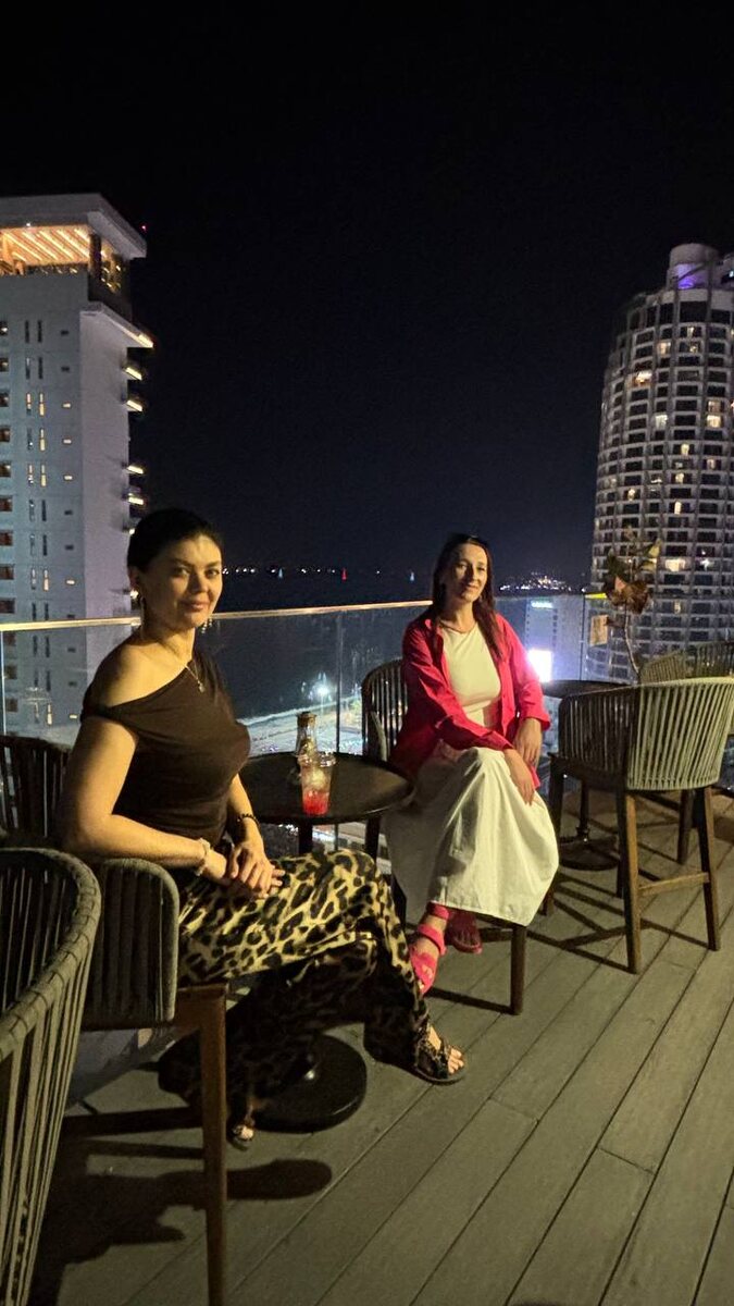 ! Приехала моя коллега Василиса с мужем! И живут от нас в 10 минутах ходьбы! Заказали на ужин морепродукты 🍣 на 24 этаже бара! Где можно еще встретиться как не в Нячанге?)