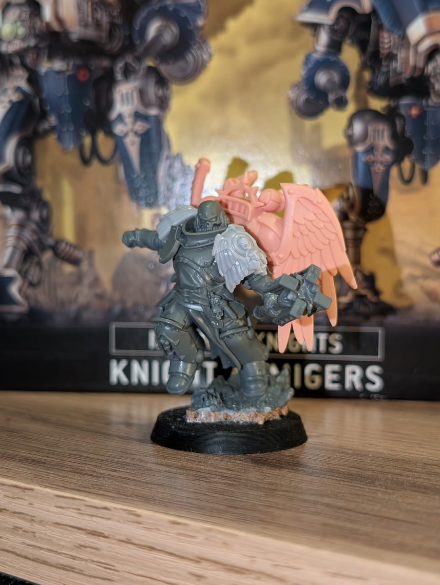 Ждать 11-ю редакцию и теоретического обновления? Можно, а зачем? 😕 Решил сделать своего, кастомного! 👷 За основу была взята миниатюра экзекратора черных храмовников. Руки - от капитана кровавых ангелов, крозиус - от капеллана в терминаторской броне, кулак спилил с битца от интеркекеров. Наплечи литье, ранец - фотополимерная 3D печать из смолы abs-like (вроде). 🎲 Как вам конверсия? 📸 #warhammer_40000 #BloodAngels #кровавые_ангелы