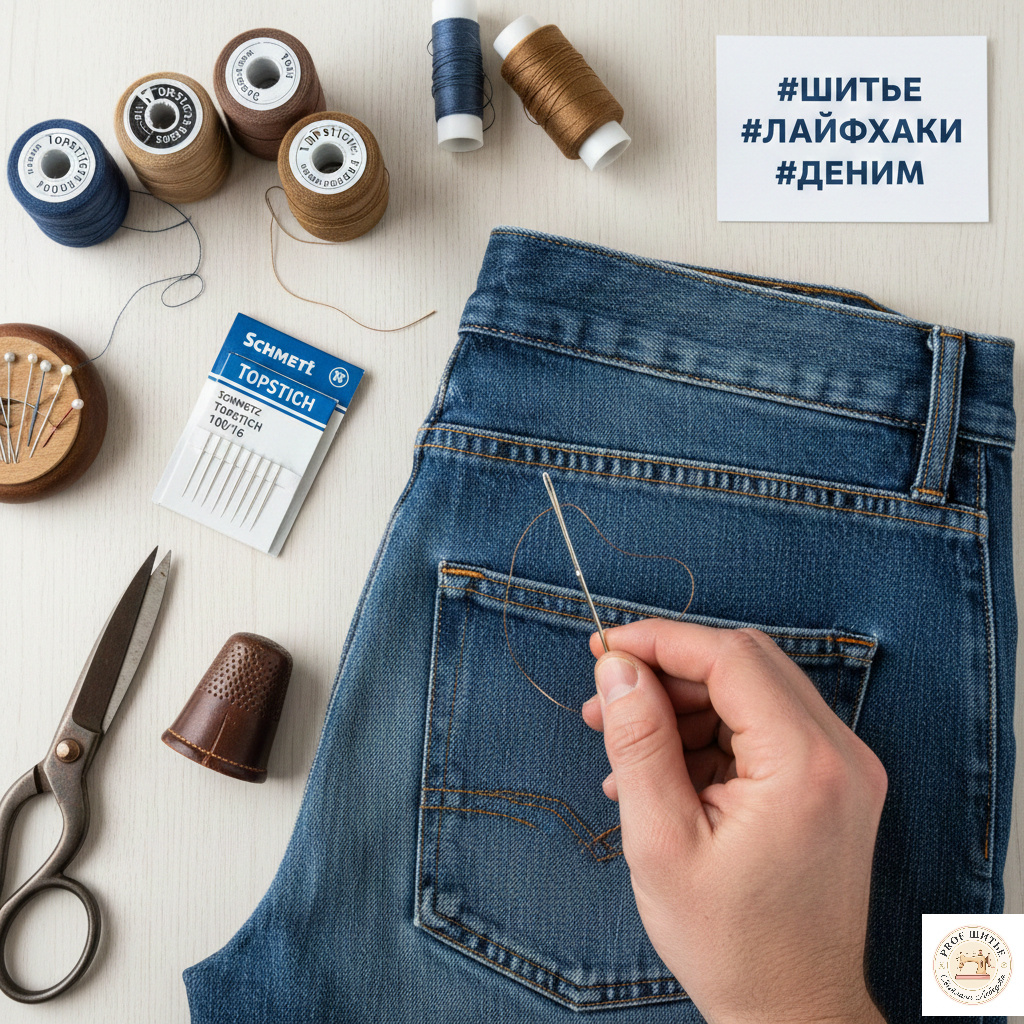 ✅ Хитрость с нитками: Если машина петляет снизу, попробуйте поставить джинсовую нить только наверх, а в шпульку — обычную нитку в тон. С лица строчка будет выглядеть как заводская!