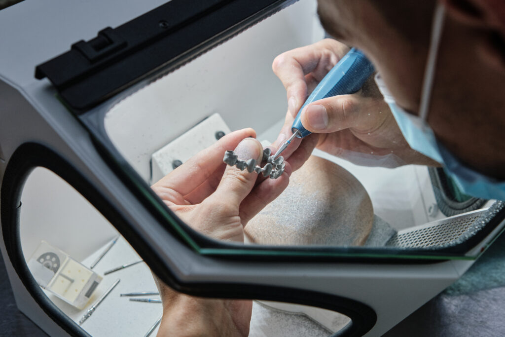 - Точность прилегания: Благодаря тому, что каркас не деформируется, протез плотно прилегает к опорным зубам или абатментам имплантатов, что исключает попадание пищи, бактерий и развитие вторичного кариеса или воспаления десны.