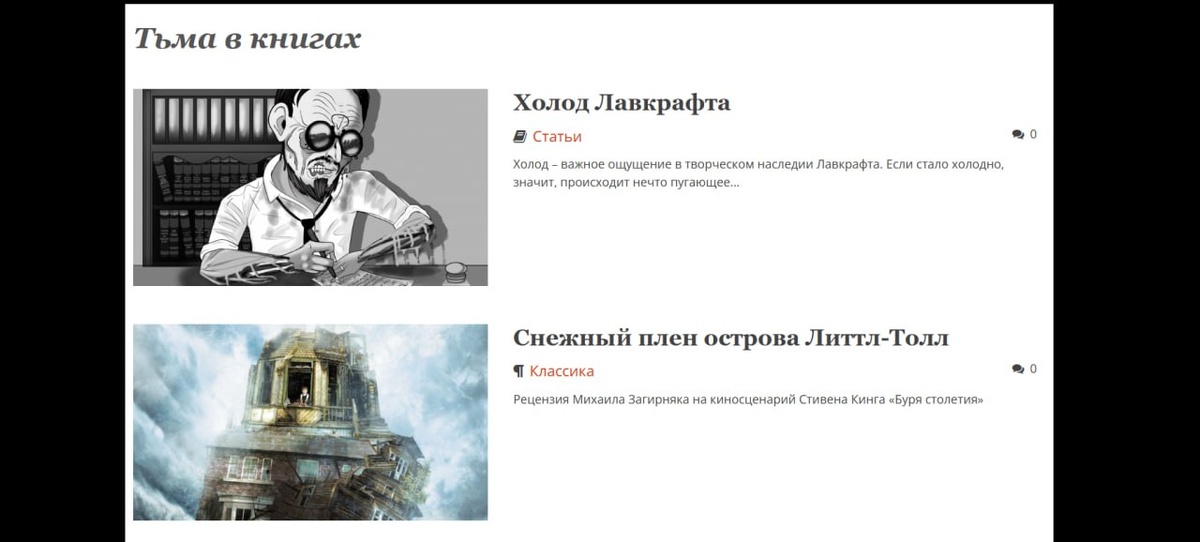 Читайте в литературном разделе февральского номера онлайн-журнала DARKER: – Статью Михаила Загирняка, исследующую тему холода в произведениях Лавкрафта. А также рецензии на: – «Дом бурь» Йена Маклауда; – «Великое и тайное представление» Клайва Баркера; – Антологию «Страшные сказки»; – «Песню для пустоты» Эндрю Пьяццы; – «Бурю столетия» Стивена Кинга. Новый номер выходит традиционно в ночь с 19 на 20 число. Ждите! И, кстати, напомним, что наши спонсоры на Бусти могут все это и многое другое прочитать уже сейчас: boosty.to/darker