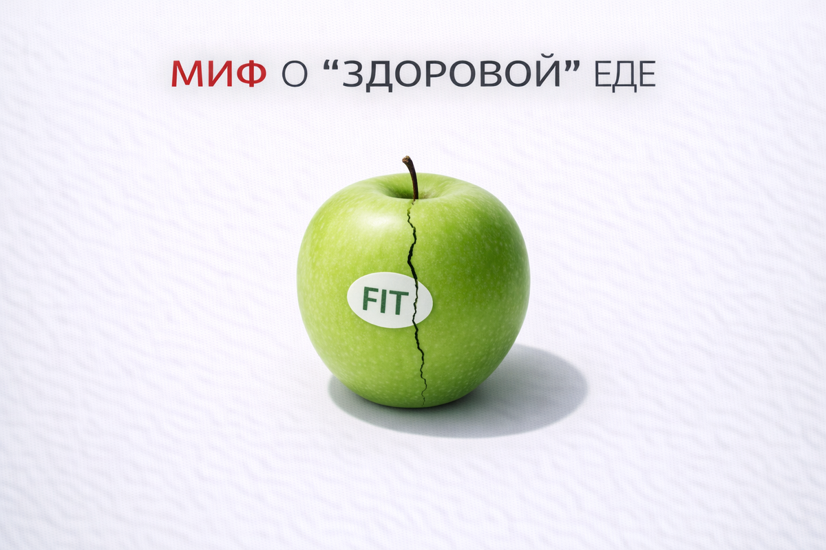 Если на упаковке написано: — значит, это полезно. Так думают миллионы. И именно здесь кроется один из самых опасных мифов современного питания: Если продукт выглядит здоровым — он автоматически помогает вам быть стройнее и здоровее. Правда неприятнее. «Здоровая» еда может: Давайте разберёмся, почему. Производители прекрасно знают, что люди боятся сахара, жира и «химии». Поэтому появляются продукты: На упаковке — спорт, стройные люди, зелёные листочки. Но если перевернуть упаковку и посмотреть состав, можно увидеть: Маркетинг работает на эмоциях.