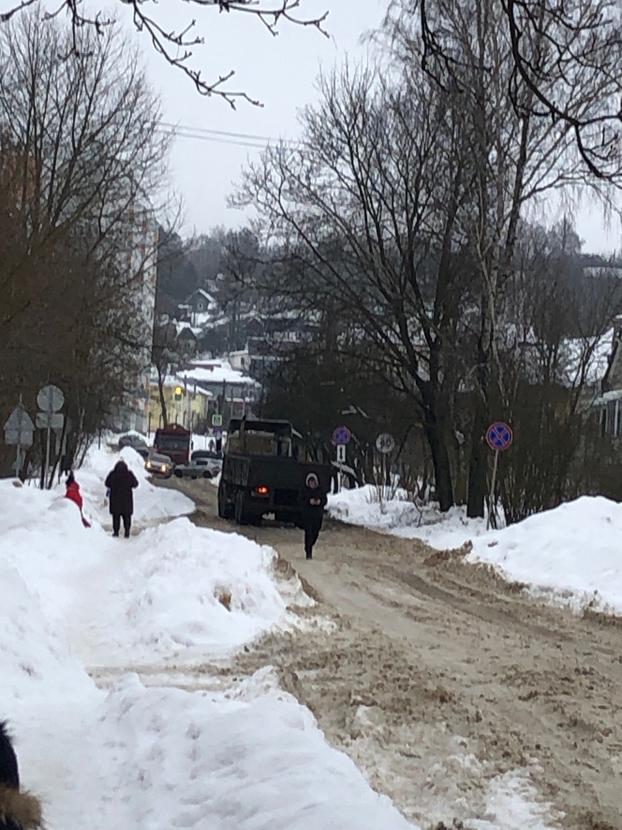 По дороге идти невозможно ,машины еле проезжают.Вокруг маленькие дети.Дорога не чищена совсем.