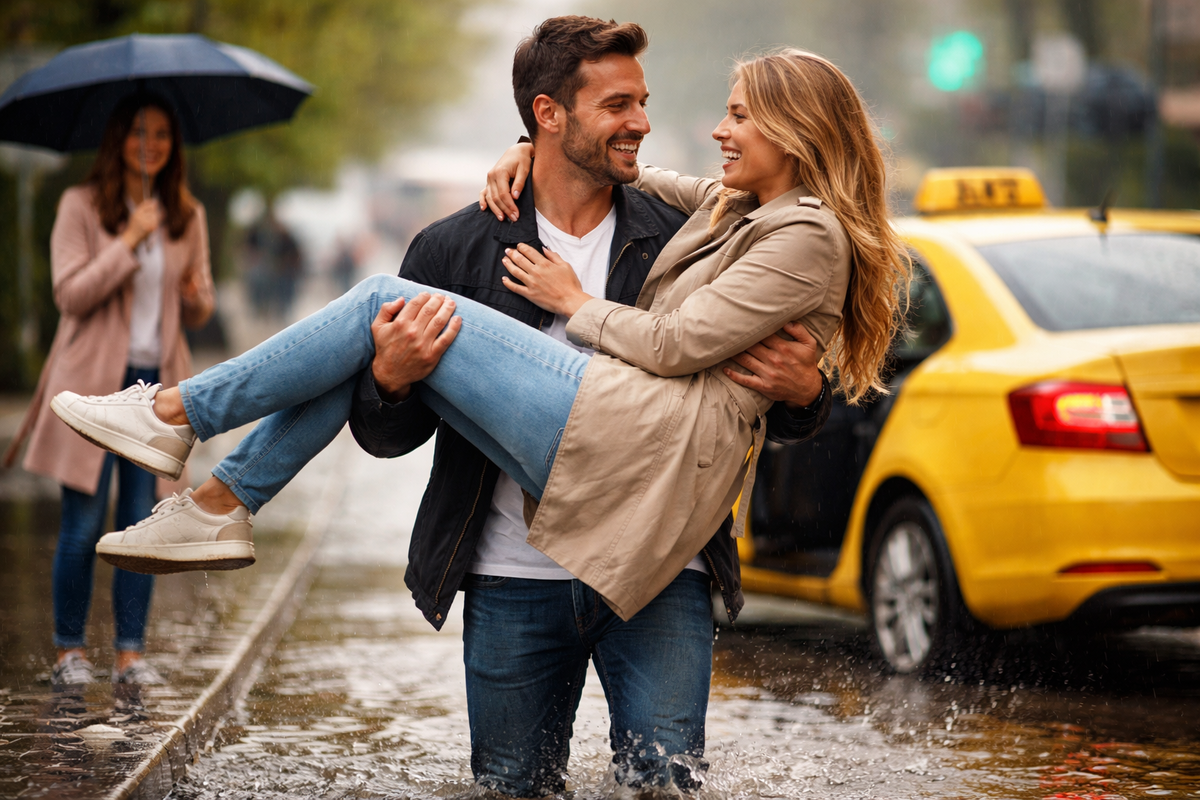 Вызвала такси и уже через пару минут подошла к машине. Она стояла прямо посреди огромной лужи и безнадёжно буксовала, словно вросла в воду колёсами. Меня мгновенно накрыла досада: день и так был не из лёгких, а тут ещё это. Я устроилась на заднем сиденье и, чтобы не сорваться, уткнулась в телефон, делая вид, что происходящее меня не касается. Но тишину неожиданно разрезал спокойный вопрос водителя: — Вы умеете водить? Я подняла глаза, помедлила секунду и без лишних слов перебралась вперёд. Села за руль, пока он вышел и начал толкать автомобиль. Я аккуратно поддала газу, поймала момент — и машина, наконец, вырвалась из плена. Совместными усилиями мы справились, будто это было не случайное происшествие, а чётко отработанная команда. Я открыла дверь, чтобы выйти, и тут же застыла: вокруг снова разливалась одна сплошная вода — ни шагу без того, чтобы не промочить ноги. Я ещё не успела даже вздохнуть, как водитель подошёл, будто это самое естественное решение на свете. — Подождите. Он легко