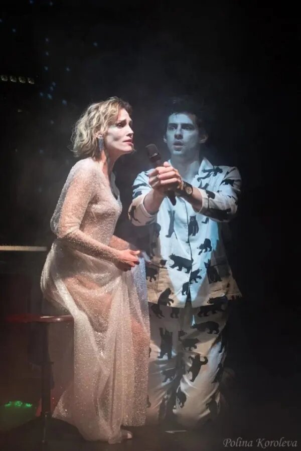 Исполняет эту роль Анастасия Сычёва – и исполняет живо и нетривиально: хрипловатый голос, пластика. Музыки в спектакле очень много – разной и громкой – но, увы, подготовленной не специально для постановки, а аккуратно подрезанной из других произведений. Исключение составляет лишь песня Вероники. Вероятно, под влиянием обилия и пестроты музыкальных композиций, выстреливающих по несколько раз за сцену у меня и возникали постоянные разрывы с повествовательной линией. Во время каждой музыкальной вставки ловил себя на мысл