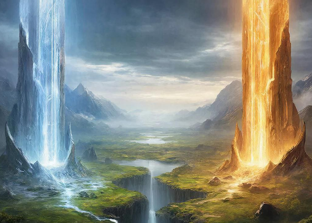Потом Валар создали два колоссальных столпа, выше всех гор, что когда либо встанут в Средиземье. Настолько высокие, что облака цеплялись за их середину.