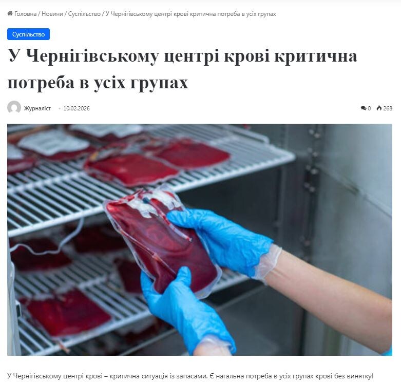 Дефицит донорской крови в Чернигове на фоне активности российских войск