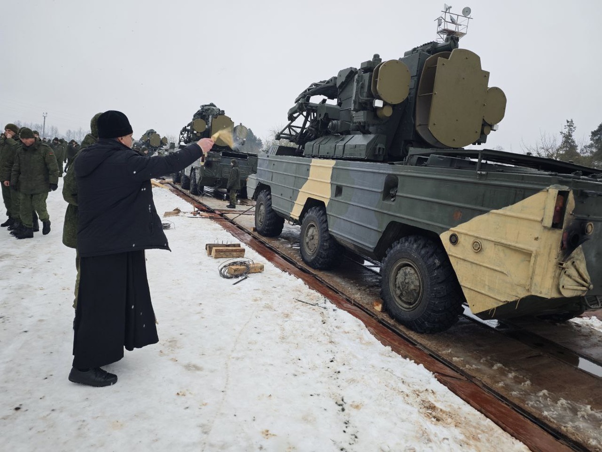 иерей Сергий Сасыкбаев совершил молебное пение святому великомученику Георгию Победоносцу — небесному покровителю воинов — в части ЗРП-740. По завершении молебна священник окропил святой водой боевую технику, призывая Божие благословение на предстоящие учения. Обращаясь к личному составу, направляющемуся на боевые сборы, отец Сергий напомнил о важности верности долгу, братства и молитвенного упования на помощь Небесного Воеводы. «Пусть святой великомученик Георгий ходатайствует пред Господом о вашем сохранении, дарует вам мужество, бдительность и мир в сердцах», — сказал он, преподавая военнослужащим пастырское благословение.