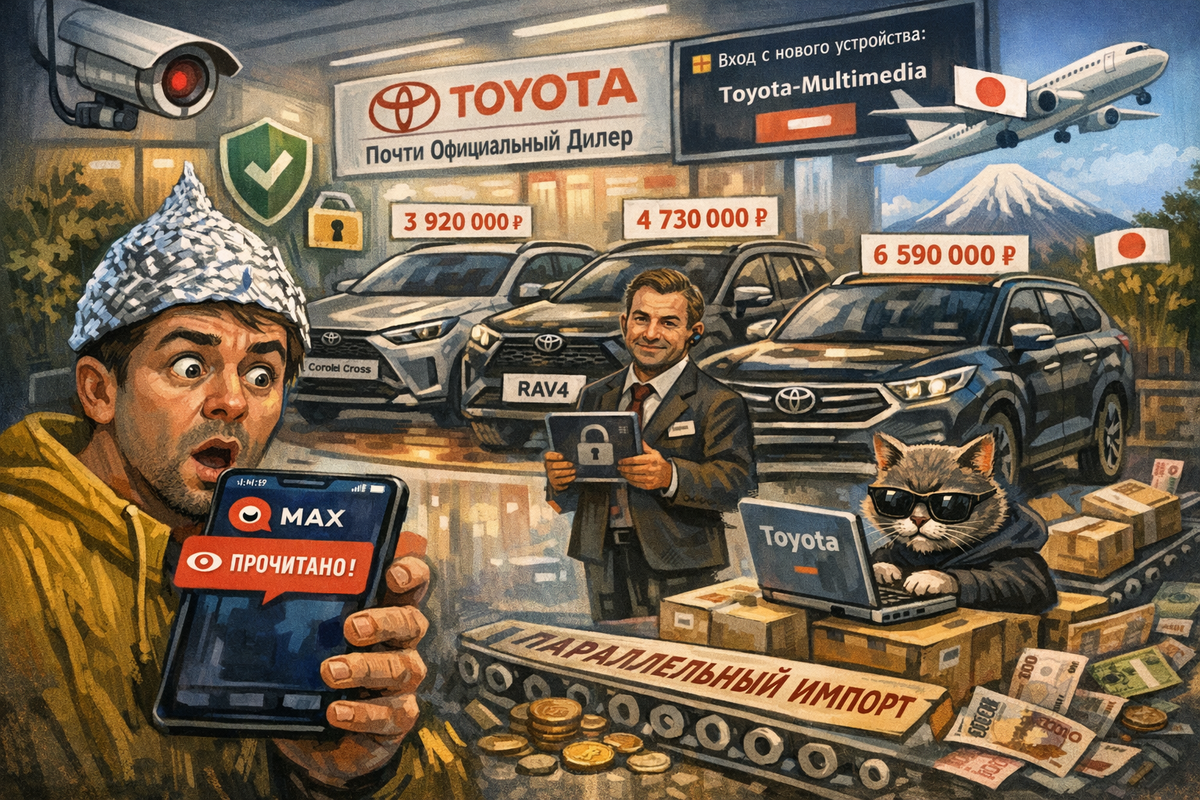 23 января. 117,3 тыс. просмотров. 3 минуты, которые изменят вашу жизнь. Сегодня расскажу, как покупка Toyota по параллельному импорту связана с тем, что ваши сообщения в Телеграм кто-то читает. Спойлер: всё взаимосвязано. Захожу в автосалон. На входе стоит Toyota Corolla Cross за 3 920 000 рублей. Руль без отделки. Экран маленький. Цена — большая. В этот момент мне приходит сообщение в MAX.