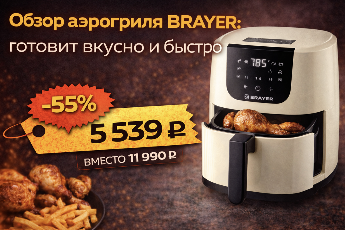 Выбор пал на BRAYER BR2043 — модель на 1500 Вт с объемом 5 литров и автоматическими программами. Рассказываю, что получилось на замену. Аэрогриль выглядит аккуратно и современно.