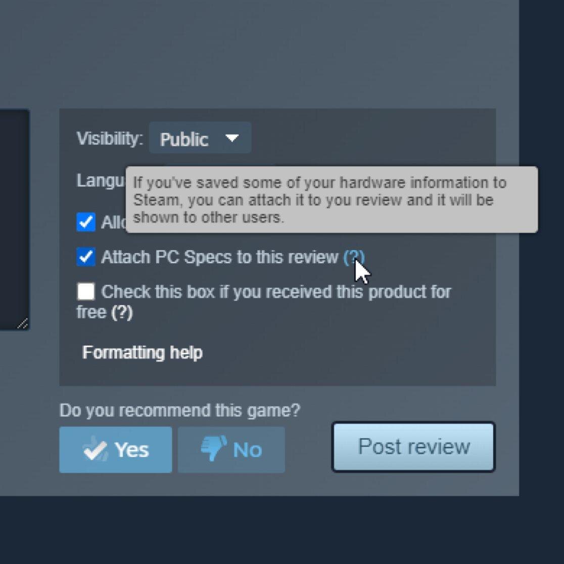 Steam добавил опцию указания характеристик ПК в отзывах