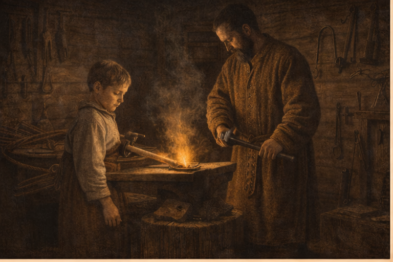 Сегодня детство — время игры. Ошибок. Поиска себя. В XVII веке детство было коротким. Иногда — почти незаметным. Ребёнок рано становился частью мира взрослых. Потому что мир не ждал. Детство без снисхождения В Московском государстве XVII века ребёнка воспринимали как будущего члена семьи, работника, наследника. С ранних лет он видел труд. Мальчик наблюдал, как отец пашет, служит, держит оружие. Девочка училась прясть, шить, вести хозяйство. Игры существовали. Но они не отделялись от будущей роли. Жизнь учила быстрее, чем слова. Почему времени не было Эпоха была суровой. Войны. Болезни. Неурожаи. Смертность среди детей была высокой. Семьи не могли позволить себе долгую беспечность. Каждый должен был быть полезным. Ребёнок рано понимал: его присутствие в семье — это ответственность. Строгость как забота Современный взгляд может увидеть в этом холодность. Но родители XVII века не были равнодушны. Они боялись за детей — и потому воспитывали строго. В поучениях того времени звучит мысль: «Н