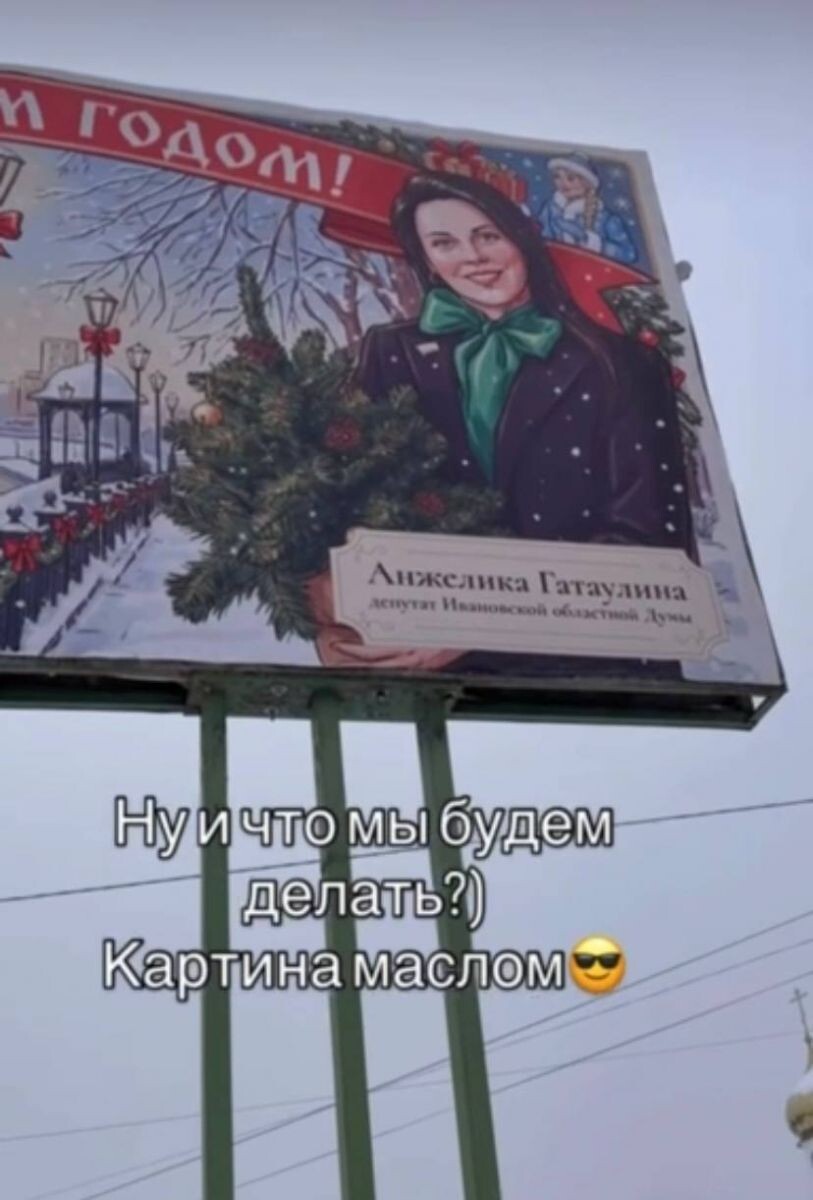 После вирусного видео жителя Кинешмы убрали баннер с депутатом Ивановской областной думы Анжелики Гатаулиной. В ролике мужчина обратил внимание заваленные снегом дороги и тротуары. В первом видео горожанин поинтересовался, видел ли кто-нибудь депутата лично. Он напомнил, что год назад, по его словам, она «очень сильно на всех баннерах висела» с призывами выбирать ее в областную думу. Сейчас же, по его словам, конструкции используются в основном для поздравлений с праздниками. «А сейчас она всех только с праздниками поздравляет. Вот тут с Новым годом. Скоро с 23-м поздравит или с 8 марта», – сказал он. Кинешемец рассказывает, что конструкция находилась у проезжей части рядом с пешеходной зоной, которые завалены снегом. После резонансного видео баннер убрали, и местный житель опубликовал еще одно. Он уточнил, что снимал рядом с девятиэтажными домами, то есть в оживленной местности, а не «в каком-то поле». Мужчина также отметил, что никаких личных претензий к депутату у него нет. «Девушка