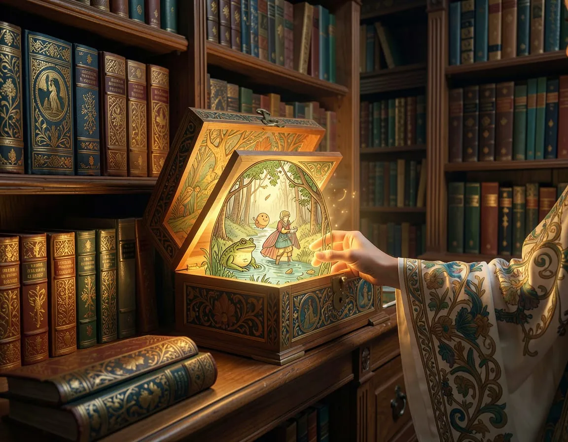 «Закройте глаза, сделайте три глубоких вдоха. Представьте, что вы входите в старую библиотеку, где на полках хранятся сказки вашего рода. Ваша рука тянется к одной из книг. Откройте глаза и выберите карту, которая откликается. Не умом, а сердцем. Какая сказка сейчас просится наружу?» Эта карта про родовой сценарий «Не высовывайся». В роду были те, кому пришлось прятать свою силу, красоту, талант, чтобы выжить (раскулачивание, зависть соседей, «белая ворона»). Теперь ты бессознательно прячешь себя настоящую, носишь маску «удобной», «незаметной», боишься проявляться. Лягушачья кожа — это не твоя, это наследственная броня.