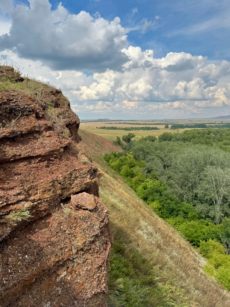 Северо-восточная сторона Самбулы представляет собой крутой скальный обрыв, сложенный из песчаника и конгломератов бурого оттенка. Сложена горная порода еще в пермский период палеозойской эры. У подножия горы были обнаружены кости древних позвоночных - батрахозавров (лягушко—ящеры), хронозуха и котлассии (рептиломорф). Интересен обрыв не только как смотровая площадка – по всей длине его разрезают глубокие и довольно широкие вертикальные трещины, будто созданные древнегреческим архитектором. Некоторые исследователи отмечают сходство трещин с фортификационными сооружениями, что спровоцировало версию о том, что здесь держал оборону от царских войск Емельян Пугачев. На сегодняшний день ни опровергнуть, ни подтвердить эту теорию не смогли, поэтому версия так и гуляет среди народа в качестве легенды. Спасибо за внимание!