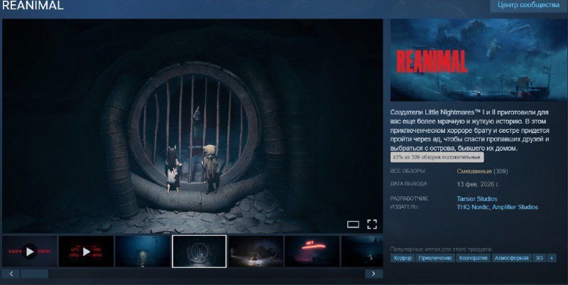 ❗️Разработчиков Reanimal жёстко захейтили — всего за пару часов игра улетела в отрицательные отзывы и держится примерно на 43% позитива в