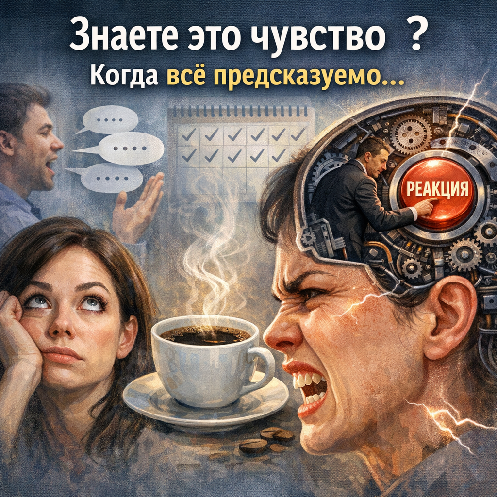 Вы когда-нибудь ловили себя на мысли, что уже знаете, что скажет собеседник, ещё до того, как он откроет рот? Или замечали, как утренний кофе оказывается именно таким, как вы ожидали — и это почему-то не радует? А бывало, что вы злились на себя за реакцию, которую не могли контролировать, словно кто-то внутри нажал кнопку?