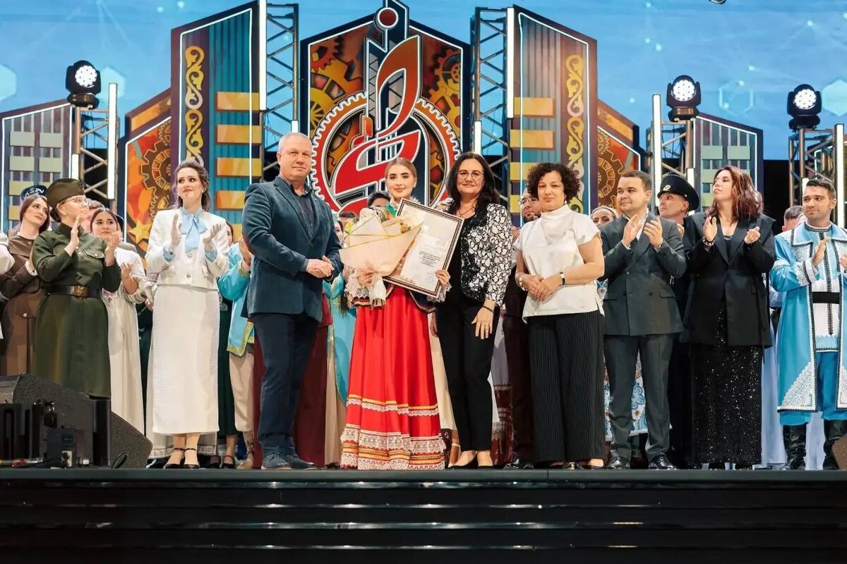 !» 🎤 «Созвездие», «Наше время», «Страна поющего соловья» — лишь малая часть фестивалей, где Анастасия брала призовые места 🏆 В студию «Новое поколение» она пришла в 2019-м — по приглашению Анфисы Елисеевой. Именно тогда поняла: её путь навсегда связан с песней ❤️ В начале было много неудач, но педагог верила и вдохновляла пробовать снова. На днях Анастасия наблюдала за конкурсом и гала-концертом «Созвездия» уже в новом статусе — как педагог младшей группы. — Я начинаю свой педагогический путь под крылом Анфисы Анатольевны. На туре наши малышки взяли диплом II степени. Теперь едем в Аксубаево на зональный этап, — поделилась она. А ещё недавно Анастасия стала I вице-мисс Казанского инновационного университета. Готовилась три дня без сна: модельное искусство, хореография, сценическая речь. — Эта победа — заслуга студии. Именно там я научилась держаться на сцене и побеждать волнение, — говорит Анастасия.