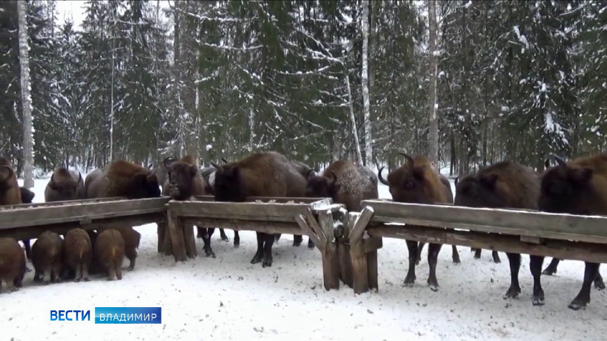 На первое — овёс, на второе — сено. В Клязьминско-Лухском заказнике работает самая необычная столовая. Её посетители — зубры. Реликтовые животные, которые летом держатся за три километра, зимой сами идут к человеку, потому что очень хотят есть. Без помощи человека зубрам зимой не выжить. Высокие сугробы не позволяют достать до прошлогодней травы. В эту столовую зубриное семейство регулярно приходит и за «добавкой». ГТРК "Владимир"