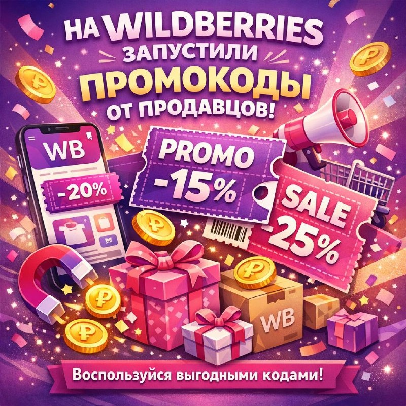 ✌️Wildberries ввёл новую опцию — промокоды, с помощью которых продавцы могут предоставлять покупателям дополнительные скидки на свои товары