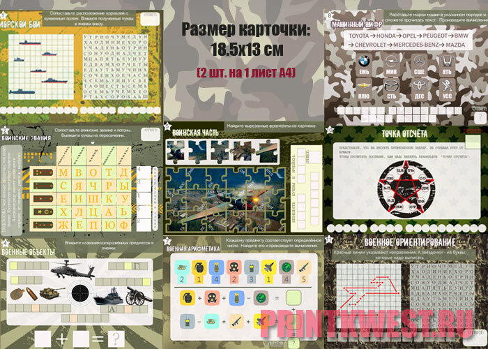 Готовые карточки-задания для самостоятельной распечатки. Отличный способ подарить подарок на 23 февраля - это устроить небольшой квест с поиском подарка по подсказкам. Задания точно придутся мальчишкам по душе, ведь они выполнены в военном стиле. Количество заданий: 10 штук, из них 2 аудиоподсказки. Квест начинается с получения конверта. В нём Повестка и первое задание. Чтобы узнать, где первый тайник, надо выполнить задание. В первом тайнике участников ждёт новое задание. В финале участники домашнего квеста на 23 февраля найдут приготовленный сюрприз или подарок. Данный сценарий квеста на 23 февраля можно провести и в классе. Для командной игры в наборе есть Победные карточки (команда, которая дала первой правильный ответ, награждается карточкой и отправляется в тайник искать следующее задание). В финале команда, набравшая больше всего победных карточек, получает Диплом участника квеста (Диплом есть в материалах сценария). Подробнее о сценарии квеста для мальчиков на 23 февраля можно