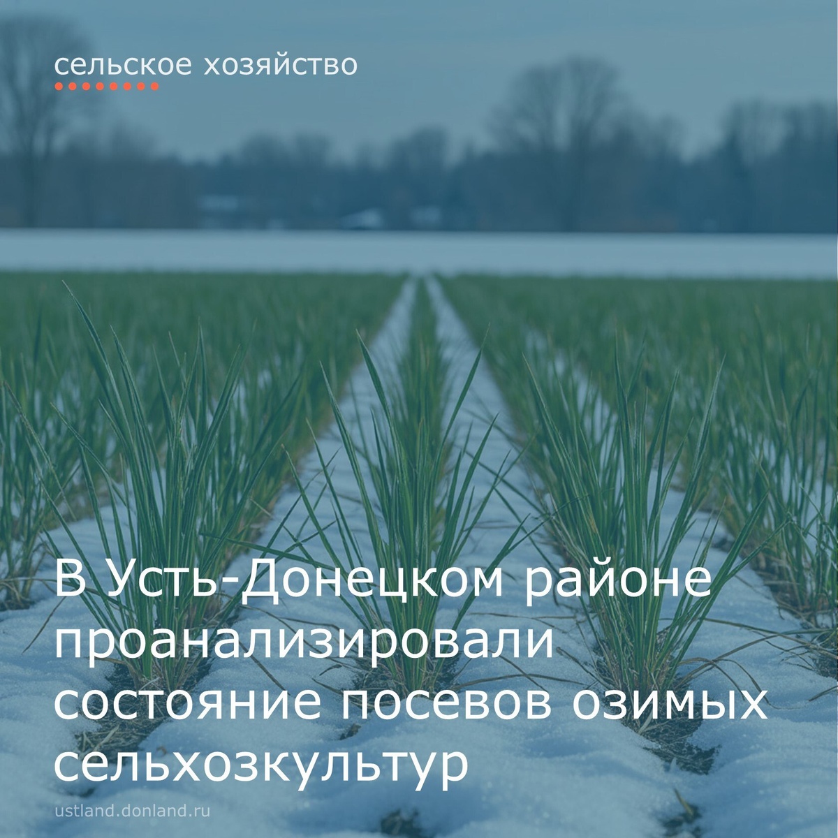 влагой. В хозяйствах Усть-Донецкого района засеяно 29,5 тыс. га озимых культур. На сегодняшний день, в зависимости от сроков сева озимые культуры находятся в разных фазах развития: всходы (9,8 %), 2-3 листа (52,8 %), кущение (37,4 %). По итогам обследований, можно сказать, что большая часть посевов находится в хорошем состоянии (61 %), однако требуется дополнительное выпадение осадков для пополнения почвы влагой. В феврале агрохимической службой района планируется отбор дополнительных проб с целью получения аналитических данных по влагонасыщению почвы и предоставлению соответствующих рекомендаций сельхозтоваропроизводителям по наименованиям и объемам внесения удобрений. #УстьДонецкийрайон #Сельскоехозяйство #АдминистрацияУстьДонецкогорайона