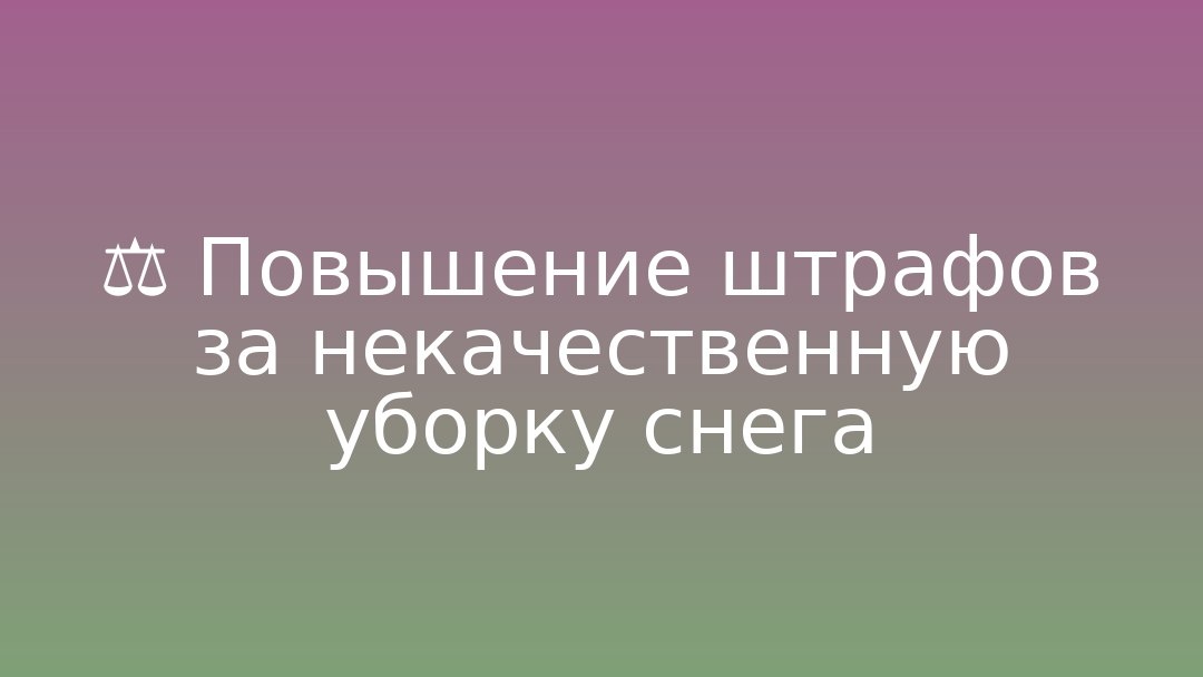 , лестниц, тротуаров и внутридворовых проездов. Для должностных лиц — от 40 000 до 80 000 руб.; для юридических лиц — от 200 000 до 500 000 руб. При причинении вреда здоровью лёгкой или средней тяжести — 100 000–200 000 руб. (должностные лица) и 600 000–900 000 руб. (юрлица). Авторы инициативы объясняют её массовыми проблемами с уборкой в январе и тем, что управляющим компаниям выгоднее платить минимальные штрафы, чем обеспечивать безопасность.