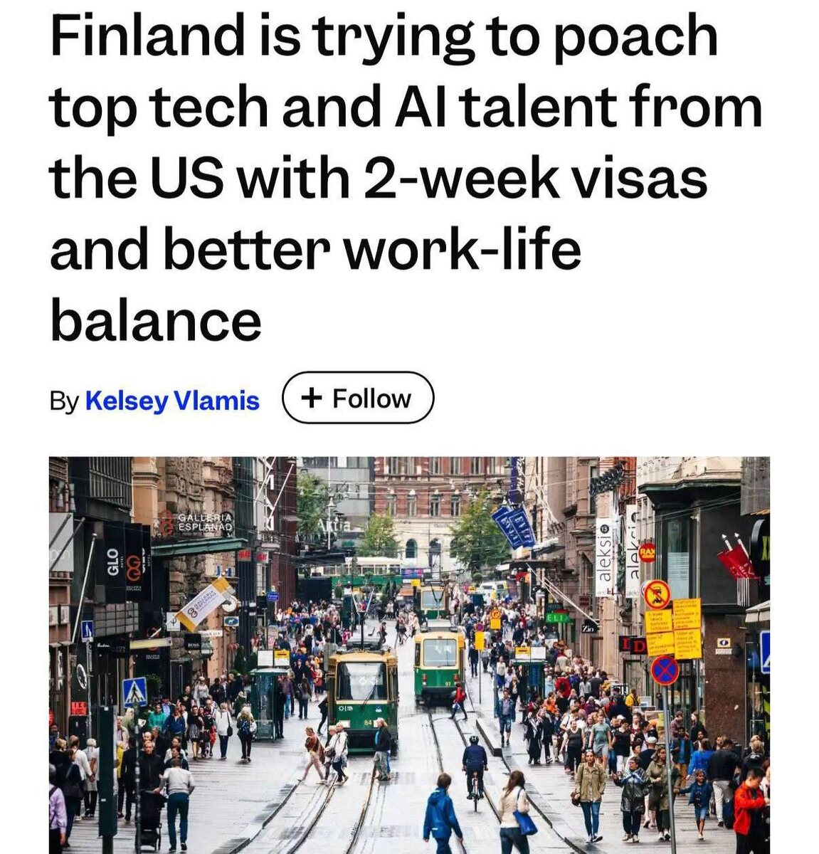 ! Кандидатам предлагают визу за 10–14 дней, рабочий день без переработок и жизнь, где «баланс» — не мем, а государственная стратегия. Страна стремится собрать вокруг себя инженеров, исследователей и стартапы, которые устали от хаоса в США и ищут место для построения AI-будущего без постоянных увольнений и дедлайнов на рассвете. У Кремниевой долины появилась неожиданная конкуренция 🧐. NeuroFlux #Финляндия #AI #специалисты #работа #баланс #госстратегия #инновации #стартапы #инженеры #КремниеваяДолина