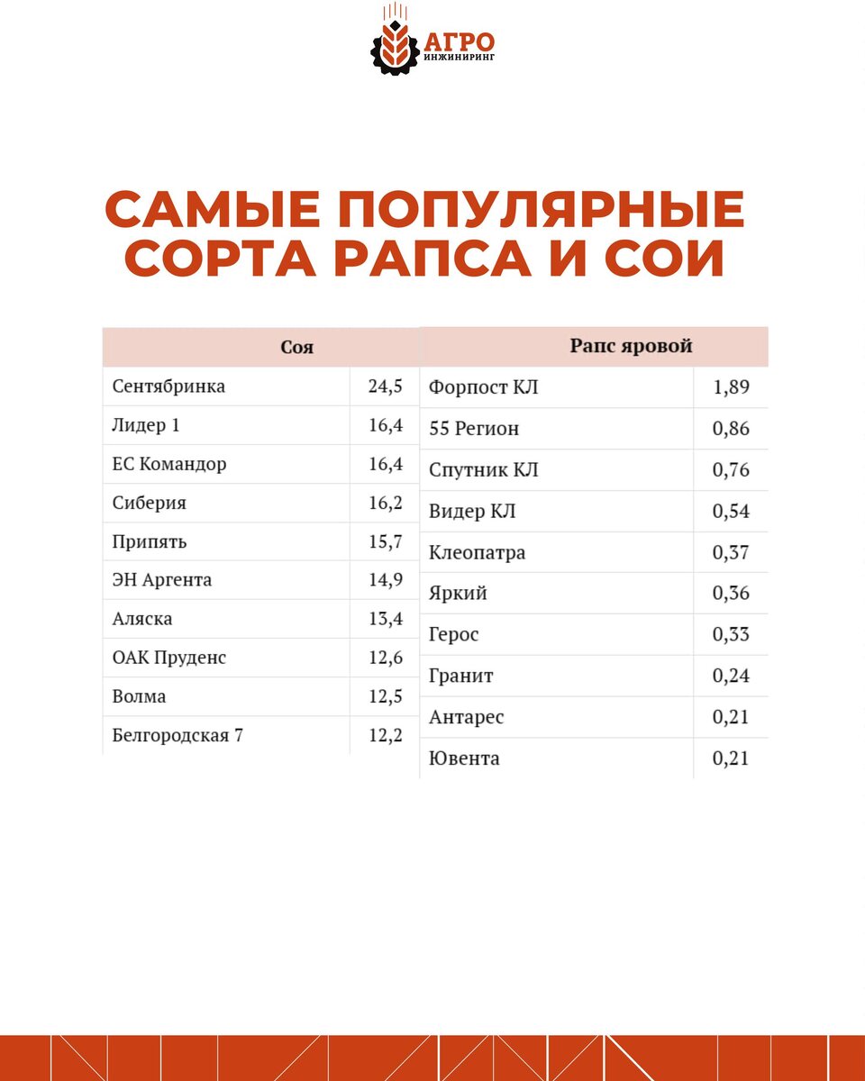 Россельхозцентр опубликовал данные по сортам рапса и сои с наибольшими объёмами высева в России по итогам 2025 года. Показатели приведены в тысячах тонн и отражают текущие предпочтения аграриев при выборе семенного материала. Важно учитывать, что информация собрана на основе данных филиалов ФГБУ «Россельхозцентр» в рамках мониторинга, проводимого по поручению Минсельхоза России. В выборку вошли объёмы семян, зафиксированные при оказании услуг хозяйствам и по другим доступным источникам. При этом статистика не охватывает 100% высеваемых семян по всем регионам страны, но даёт репрезентативное представление о рыночных тенденциях. Такие данные позволяют оценить, какие сорта сегодня считаются наиболее востребованными с точки зрения урожайности, адаптации к климату и экономики производства — и в каком направлении движется рынок масличных культур. Подписывайтесь на наш ТГ-канал и включайте уведомления, чтобы не пропустить важную информацию 🔔