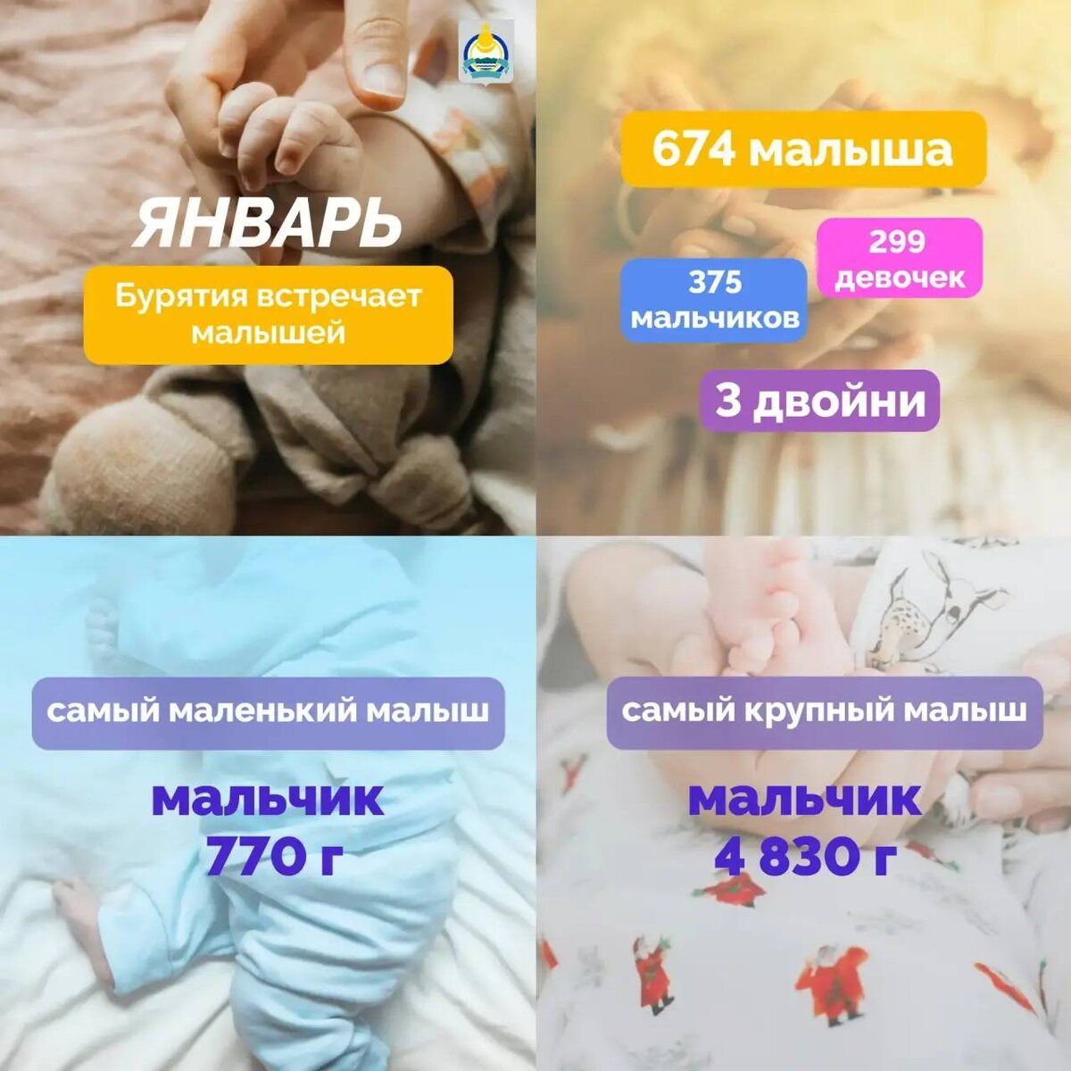 🌟 В Бурятии в январе на свет появилось 674 ребенка